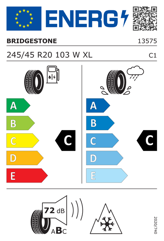 Гумата Bridgestone BLIZZAK LM001 XL FR AO е налична в размер 245/45 R20 103W. Размерът на гумата може да се прочете по следния начин: