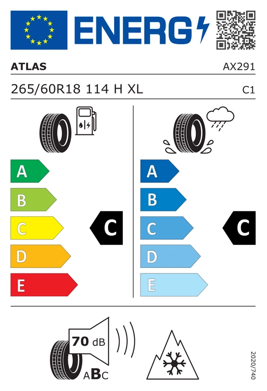 Anvelopa Atlas POLARBEAR SUV2 XL este disponibilă în dimensiunea 265/60 R18 114H. Dimensiunea anvelopei poate fi citită după cum urmează: